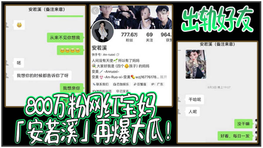 800万粉网红宝妈安若溪再爆大瓜出轨好友北川还拍摄性爱视频